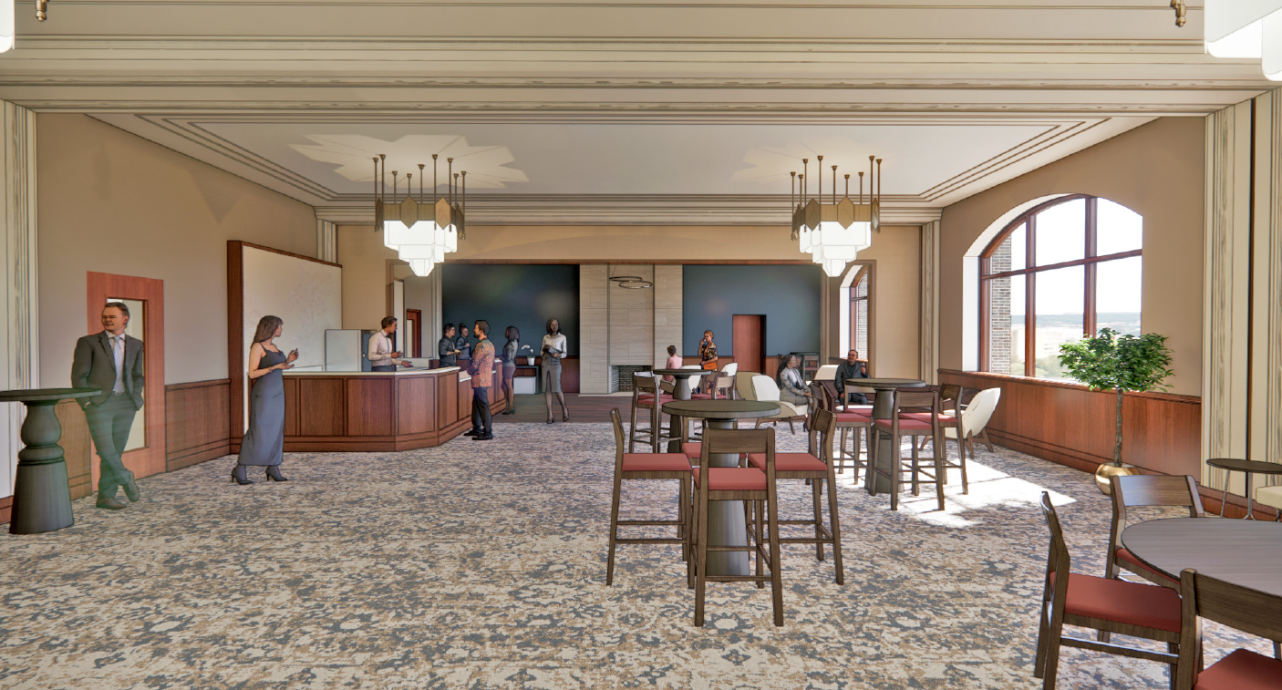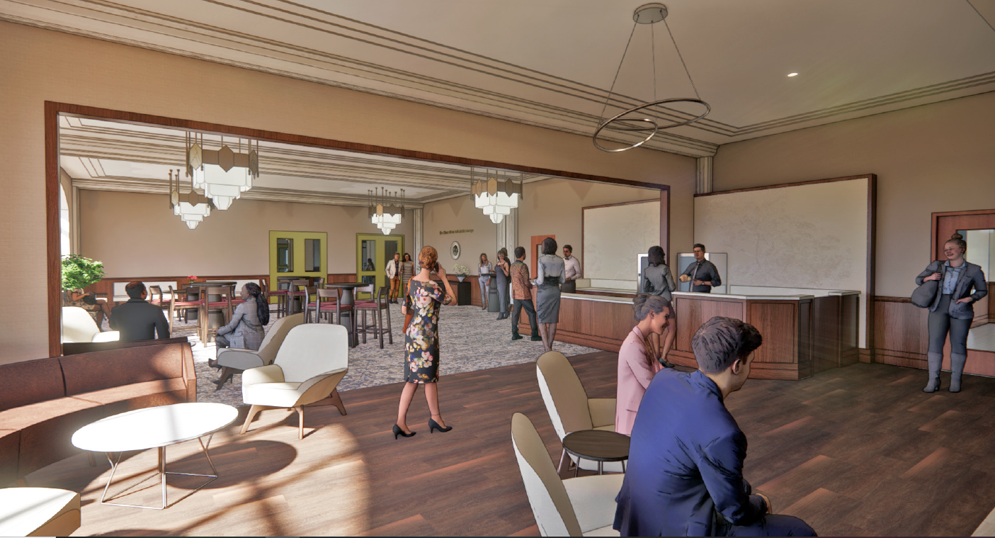 This phase included RBTL’s new management of five area parking lots, exterior maintenance, and the restoration of several historic brass doors (which had darkened over time due to oxidation). Two refurbished elevators and a newly created crossover point now provide long-overdue access to the second-floor Theatre lobby. A new second-floor Theatre lounge/concession space has been created, which includes new men’s and women’s restroom facilities, plus a family/all-gender restroom. Additionally, a new rear (west) entrance with drop-off area, along with a refurbished main-floor lounge/entertainment space (with updated restroom facilities) is now open. And finally, restoration of the Main Street façade, including new stairs and railings and wider sidewalks, now allows for safer entry into the complex.